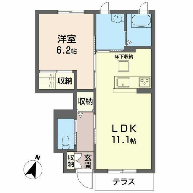 | 間取り | 1LDK(LDK11.1帖 洋室6.2帖) | 主要採光面 | 南東 |